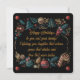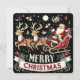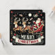 Capture a magia atemporal da Véspera de Natal com este encantador cartão de Natal. O design da frente apresenta um Papai Noel nostálgico guiando seu trenó e renas saltitantes através de um céu de meia-noite estrelado. Contra um fundo preto profundo, a cena é emoldurada por ornamentos vintage, pássaros festivos e uma lua crescente, com "BOAS FESTAS" exibido em uma faixa de fita clássica. A parte traseira do cartão continua o tema elegante com uma borda de azevinho desenhado à mão, árvores de Natal, ornamentos e bastões de doces com uma mensagem sincera. Todo o texto é personalizável, permitindo que você adicione o nome da sua família ou altere a saudação para combinar com o seu estilo. Perfeito para enviar votos calorosos e tradicionais de Natal.