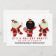 Papai Noel negro dançando com estrelas em um fundo branco. Design divertido, bobo e original que promove a diversidade durante a temporada de festas.