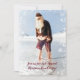 O Pai Natal bonitinho a mergulhar os pés no oceano por diversão e bons momentos como uma festa de Natal na praia! Convide seus convidados para uma festa de banquete em um hotel de praia e aproveite a noite. Texto personalizável em frente e atrás.