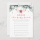Os Papais noeis Vermelhos, Bebê Natal Roupas Adivinhem O Jogo da Comida Bebê traz diversão festiva para o seu chá de fraldas de Natal! Apresentando um design bonito com roupas de bebê Papais noeis vermelhas, flocos de neve vermelhos delicados e toques de eucalipto verde de inverno, este jogo desafia os hóspedes a adivinhar diferentes sabores de comida de bebês baseados no aspecto, no cheiro ou no sabor. É uma atividade lúdica que captura o espírito de feriado aconchegante e adiciona um elemento alegre e interativo à sua celebração enquanto os convidados competem para identificar corretamente cada sabor. Perfeito por criar recordações e risos divertidos enquanto comemorava a chegada do seu pequeno!