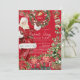 Este convite clássico para festas de Natal apresenta Papai Noel, uma coroa, estocagem, presentes sorteados com arco vermelho/fita, poinsetos e colas. O verso apresenta um fundo verde com sinos e ouros. Personalize-o para as suas necessidades. Você pode encontrar produtos correspondentes na minha loja.