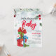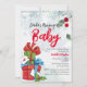 Papais noeis Nos Trazendo Um Convite Para Chá de fraldas De Natal. Apresentações e presentes de aquarela e árvore de Natal com flocos de neve nas costas.