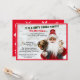 Convite com um Papai Noel adorável e um fundo de neve na frente do cartão. Fundo vermelho com flocos brancos de neve na parte traseira do cartão. Veja todas as minhas lojas em https://bit.ly/SandyspiderStores