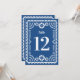 Este belo papel picado inspirado no cartão de número da mesa de casamento apresenta um quadro de ornamentado em branco, um fundo azul colorido e uma tipografia festiva. Esta elegante, porém moderna design é uma opção fabulosa para um casamento latinx, janto de ensaio, festa de noivado ou chá de panela. Consulte coordenando itens na coleção...