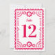 Este belo cartão de número da mesa de casamento inspirado no papel picado apresenta um quadro de ornamentado em rosa quente colorido sobre um fundo branco, e tipografia festiva. Esta elegante, porém moderna design é uma opção fabulosa para um casamento latinx, janto de ensaio, festa de noivado ou chá de panela. Consulte coordenando itens na coleção...