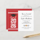 Adicione seu ano de graduação, nome e detalhes do local com data para este moderno fundo vermelho e branco negrito com convite de festa de formatura de tipografia negra usando nosso botão "Personalizar".