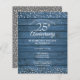 Apresentando delicados corações de amor prateado confete em um fundo azul de painéis de madeira rústica. Personalize com sua informação especial de vinte e cinco anos de aniversário de prata em carta chic. Projetado por Thisnotme©