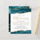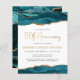 Este elegante convite de festas de 50 anos apresenta uma borda superior e inferior do geode agate de aquarela em tons de azul lacrimogêneo com realces falsos de brilho dourado. As palavras "50.º Aniversário" aparecem em folha de ouro brilhante em letra decorativa moderna de escrita manual. Personalize-o com os nomes dos convidados de honra em texto dourado e os detalhes da festa em cinzas de carvão em fundo branco. Uma imagem correspondente do lacado e do agate dourado aparece no lado oposto.