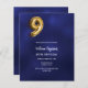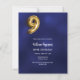Um convite fotográfico moderno e minimalista para uma festa de aniversário 90. Um fundo azul marinho incolor. Personalize e adicione uma foto e detalhes da festa. 1 folha = 1 convite impresso de borda a borda.