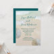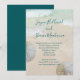Convites de casamento na praia com desenho de dólares de areia. A areia da praia e a água azul-esverdeada tropical são o fundo para o texto. Os nomes completos do casal, em escrita moderna à mão, no topo do papel, com um parágrafo de texto impresso abaixo. Espaço de texto suficiente é fornecido para um endereço de recepção e / ou site de casamento / outras informações. A redação é perfeita para um pequeno encontro casual. Dólares de areia brancos naturais decoram as bordas.