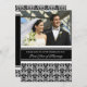 Cartão de convite personalizado para festa de primeiro aniversário de casamento em preto e branco elegante padrão de damasco floral clássico, delicado e moderno. Personalizável com os detalhes da sua festa e sua própria foto.