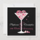 Um copo de coquetel bonito transbordando corações vermelhos e rosados faz um convite festivo e amoroso para o seu evento. Perfeito para um aniversário de casamento (como mostrado) ou pode ser personalizado para qualquer ocasião em que o amor esteja envolvido!