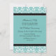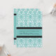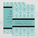 Convite de cartão de festa de aniversário de casamento de 25 anos em elegante padrão damasco floral moderno azul-turquesa, preto e branco, delicado e contemporâneo. Personalizável com os detalhes da sua festa.