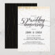 Este convite de festa de aniversário de 50 anos de casamento, bodas de ouro, apresenta confetes dourados (simulação de folha metálica) com as palavras "aniversário de 50 anos de casamento" em uma fonte cursiva preta. O fundo é preto, mas pode ser alterado para qualquer cor de sua escolha. Os detalhes da celebração podem ser facilmente personalizados para o seu evento especial. A parte traseira do cartão apresenta um padrão pontilhado dourado, com um fundo preto que você pode personalizar ao seu gosto. Uma maneira bonita e simples de convidar os convidados para celebrar uma bodas de ouro.