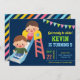 Incomode seus convidados com este convite de aniversário colorido com um slide infantil fofo com tipografia vibrante sobre fundo azul. Basta adicionar os detalhes do seu evento neste modelo fácil de usar para torná-lo um convite de tipo único. Sacudir a placa para revelar um padrão colorido de listras na parte traseira da placa.