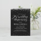 Este convite de festa para Bodas de Prata de 25 anos, elegante e festivo, com 11,43 cm x 15,87 cm, apresenta confetes prateados (simil-fólia) com as palavras "aniversário de 25 anos de casamento" escritas em uma fonte cursiva prateada. O fundo é preto, mas pode ser alterado para qualquer cor de sua escolha. Os detalhes da celebração podem ser facilmente personalizados para o seu evento especial. O verso do cartão apresenta um padrão pontilhado prateado, também com fundo preto que você pode personalizar ao seu gosto. Uma maneira linda e simples de convidar os convidados para celebrar as bodas de prata.