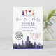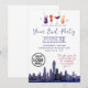 Convite de festa de cocktail com paisagem urbana em aquarela corporativa para celebrar o final do ano e desejar Feliz Natal ou Boas Festas aos funcionários e colegas. Melhor para eventos realizados na cidade de Nova York ou outras cidades urbanas com arranha-céus. Personalize o texto e inclua o logotipo da sua empresa.