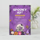 Prepare-se para uma noite de diversão e sustos com o nosso Convite para Festa de Halloween Spooky Night. Com um design roxo divertido com abóboras, aranhas e morcegos de desenho animado, este convite é perfeito para a sua festa de Halloween. Ideal para eventos familiares, o tema "Noite Assustadora" vai entusiasmar os convidados de todas as idades. Defina o tom para a sua celebração de 31 de outubro com este convite vibrante e festivo. A entrada gratuita certamente atrairá uma multidão, tornando-o indispensável para qualquer anfitrião de festa de Halloween!