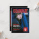 Destaque-se com este design de capa de revista elegante e ousado. O convite de celebração de formatura da capa da revista apresenta uma tipografia ousada em vermelho e branco.