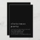 Convite de festas de Natal preto branco mínimo. Minimalismo clássico preto e branco com este design totalmente personalizável. O cabeçalho é maior em na moda em minúsculas com os detalhes abaixo.Personalize facilmente o texto e pode ser alterado para qualquer cor de sua escolha através da opção personalizar mais. Disponível digitalmente ou impresso.