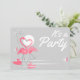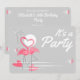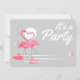Um par de flamingos cor-de-rosa com pescoços curvados para formar um coração ficam no mar em uma praia enluarada. Um design elegante e romântico com um toque retrô criado em uma paleta de cores rosa, cinza e branco com um fundo que muda de cor. Um design personalizável para você adaptar com seu próprio texto, imagens e ideias. Uma imagem de arte digital original.