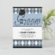 Reúna os cavalheiros para uma noite de libertinagem e diversão com este convite clássico. O cartão apresenta a palavra "Noivo" com um bigode e cartola contra um padrão de diamantes masculinos.
