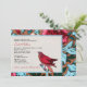 Contra um rico fundo floral, tapeçaria em pinks e blues um passarinho vermelho embelezando sua mensagem personalizada. Este convite é adequado para qualquer ocasião feminina, como aniversários, almoços, etc. O cartão é fácil de personalizar com sua redação, fonte, cor da fonte e escolha de seis tipos de papel.