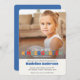 Um convite elegante para a festa de formatura do jardim de infância. Foto central grande com cabeçalho sobreposto de letras coloridas mistas. Tipografia e composição modernas minimalistas. Sofisticado e jovem. Excelente convite para celebrar um passo espetacular na viagem educacional de alguém.