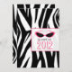 Um convite para a graduação da classe 2012 com um fundo de impressão zebra em frente e atrás. A frente apresenta texto "Classe de 2012" com óculos escuros de gato design. Personalize o texto com detalhes da sua ocasião.