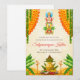 Este convite digital DIY Satyanarayan, um convite de fusão em elegância tradicional, é complementado com flores e folhas, perfeito para o seu convite de pooja indiano.
