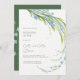 Convite para a Manhã Seguinte com um buquê elegante de flores esquecer-me-não azuis suaves com folhas verde-claro e caules curvos, cores pastéis naturais de primavera ou verão, um buquê leve romântico de flores silvestres. Aquarela digital botânica. Botânica floral Convite para a Manhã Seguinte. Coleção Esquecer-Me-Não.