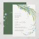 Convite para a Manhã Seguinte com um buquê elegante de flores azul suave de não-me-esqueças com folhas verde claro e caules curvos, cores pastéis naturais de primavera ou verão, um buquê leve e romântico de flores silvestres. Aquarela digital botânica. Botânica floral Convite para a Manhã Seguinte. Coleção Esqueci-Me-Não.