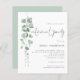 Um valor para o alternativo do ORÇAMENTO em tamanho menor de 4,5 x 5,6" de semirbrilho de 110 lbs, que é de espessura semelhante a um cartão postal (no entanto, não é adequado para uso como cartão postal). POR FAVOR, OBSERVE QUE HÁ UM convite por folha. Convite de festas de Baixa de Script Eucalyptus de Orçamento. Estilo botânico minimalista, com verde-aquarela fluindo para o lado esquerdo e texto para a direita. Um script manuscrito definido para o Partido da Reforma e o resto do texto que você pode personalizar facilmente.