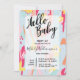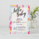 Olá bebê brilhante, moderno, alegre e artístico expressivo é um convite para chás de fraldas de menino. Palete de cor suave e vibrante de blues, pinks e amarelos são usados para criar um design animado e convidativo para o chá de fraldas. Nossas ousadas, modernas, coloridas picadas e formas criam um convite alegre e colorido ao chá de fraldas. O verso do convite é desenhado com um impressão de padrão ousado, moderno, preto e branco, que contrasta perfeitamente com o lado direito e colorido do convite para o chá de fraldas. Todas as ilustrações contidas neste abstrato de convite colorido para chás de fraldas moderno são obras de arte originais desenhadas à mão pela Moodthology. Você pode personalizar o tamanho do texto, a cor do texto, a fonte e o layout para sua preferência de design pessoal.