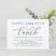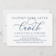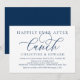 Convite de Brunch de Casamento em Fuga com Letra Caligráfica Minimalista Romântica Moderna em Azul Marinho (Almoço Felizes para Sempre). É perfeito para o anúncio do seu casamento em fuga e celebração da festa, após o seu melhor dia. Adicione seus detalhes em fonte / letra preta correspondente.