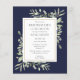 Com folhas delicadas de aquarela em um fundo azul-marinho, este convite de almoço de damas de honra econômico pode ser personalizado com os detalhes do seu evento especial. Criado por Thisisnotme