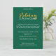 Celebre as festas com estilo com este convite elegante para Almoço e Aprendizado de Feriado. O design apresenta um fundo verde rico, fontes clássicas e um toque festivo que é perfeito para eventos da empresa, reuniões de equipe ou celebrações no escritório. Convide seus colegas para desfrutar de boa comida, risadas e aprendizado enquanto fazem uma pausa da agitada temporada. Todo o texto pode ser facilmente personalizado, incluindo data, hora, local e detalhes de RSVP, tornando-o ideal para departamentos de RH, equipes de treinamento ou coordenadores que organizam um almoço alegre de final de ano.