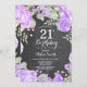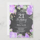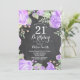 Convite para aniversário de 21 anos botulínico de roxo. Convite à Mulher para o Aniversário de Peões Rosa Floral Flor Floral de Aquarela. Rosa Rosa Rosa Elegante e Flores de Pêonias. Aniversário Adulto. Fundo Chalkboard. Preto e Branco. 13 15 16º 18º 20 21rua 30 40º 50º 60º 80 de 70 100º, qualquer idade. Para mais personalização, clique no botão "Personalizar" e use nossa ferramenta de design para modificar este modelo.