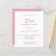 Convite para aniversário de 21 anos de Blush de Texto Simples de Orçamento. Um valor para o alternativo menor de 4,5 x 5,6 polegadas é usado como padrão para a opção de semigloscópio, que é recomendada para convites e é de espessura semelhante a um cartão postal. A opção satin é um papel muito mais fino. A cor e o tipo da fonte podem ser alterados através do menu de edição. Você também pode alterar as cores do texto e do plano de fundo em ambos os lados, se desejar.