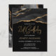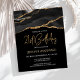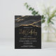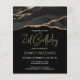 Este convite de aniversário de 21 anos de tendência apresenta uma imagem de aquarela de um geode agado em preto com realces de ouro falsos. As palavras "aniversário de 21 anos" aparecem na falsa cintilação dourada em letra decorativa moderna de escrita manual sobre fundo preto. Personalize-o com o nome do honroso em texto dourado e os detalhes em branco. A mesma imagem de preto e dourado é exibida no verso.