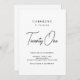 Este convite de aniversário chic e moderno apresenta um fundo branco elegante com tipografia na moda negra. A mistura de fontes ousadas serif e manuscritas destaca a idade do celebrante de uma forma elegante e atraente. Perfeito para festas de aniversário sofisticadas ou celebrações de marcos, este design exumenta elegância e simplicidade ao mesmo tempo que mantém uma aparência de eterno.