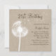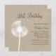 Um dandelion suave e delicado decora este convite de festas de aniversário de 21 anos num fundo ilustrado de burlap. É apresentado no documento de base; no entanto, recomendo o peso e a textura do papel de linho, a fim de melhorar a sensação de arroto.