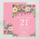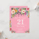 Convite para aniversário de 21 anos de Surpresa Floral Rosa para Mulheres. Flor Floral de Aquarela. Fundo Rosa. Rosa, Amarelo, Laranja, Flor Roxo. Aniversário Adulto. 13 15 16º 18º 20 21rua 30 40º 50º 60º 80 de 70 100º, qualquer idade. Para mais personalização, clique no botão "Personalizar" e use nossa ferramenta de design para modificar este modelo.