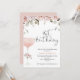Boho Blush Floral Glass aniversário de 21 anos Invitation Bohemian inspirou um convite para aniversário de 21 anos com um adorável arranjo floral e eucalipto em cima do design e um vidro cor de pincel. Este convite para aniversário de 21 anos inclui também um título de imagem de caligrafia moderna que é removível.