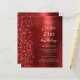 A borda esquerda deste convite de aniversário moderno apresenta uma borda vermelha falsa e brilhante. O texto personalizável combina o script branco e o sans serif fonts em um fundo vermelho de metal escovado. O verso apresenta um design correspondente.