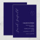 Comemore em estilo refinado com este convite de aniversário azul de marinho. Apresentando um roteiro branco sofisticado e fontes serif clássicas, em conjunto com um delicado detalhe floral de arte de linha, esse design minimalista é perfeito para uma celebração de aniversário de 30 anos ou um marco. Ideal para jantas de escala superior, grupos de cocktails ou reuniões noturnas. Totalmente personalizável com informações de nome, data, local e RSVP.