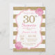 Convite para aniversário de 30 anos de Surpresa Rosa e Dourada. Coloração rosa e Dourada. Listras brancas e rosa. Flor Floral Rosa. Aniversário Adulto. Festa de aniversário feminina. Para mais personalização, clique no botão "Personalizar" e use nossa ferramenta de design para modificar este modelo.