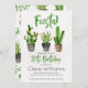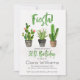 Convite para aniversário de 30 anos Fiesta com três cactos em um fundo de imagem em papel d'água digitalizado em branco. Eu usei um texto falso de aquarela para o título e a idade que não pode ser alterada. Eu adicionei alguns trabalhos de linha no topo e em volta do design e em torno do nome. O plano de fundo do convite é um cacto e um padrão de texto em relevo. Esse convite para aniversário de 30 anos de fiesta é fácil e pronto para personalizar.