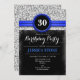 aniversário de 30 anos de Convite Elegante design em preto e prata brilhante falso com uma dica de azul real. Perfeito para a trinta festas de aniversário feminina. Também pode ser personalizado para qualquer ano!