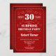 convite de aniversário surpresa 30 para homens ou mulheres. Retro vermelho elegante, design branco com fonte de script de tipografia. Até 30 anos! Pode ser personalizado para qualquer idade.